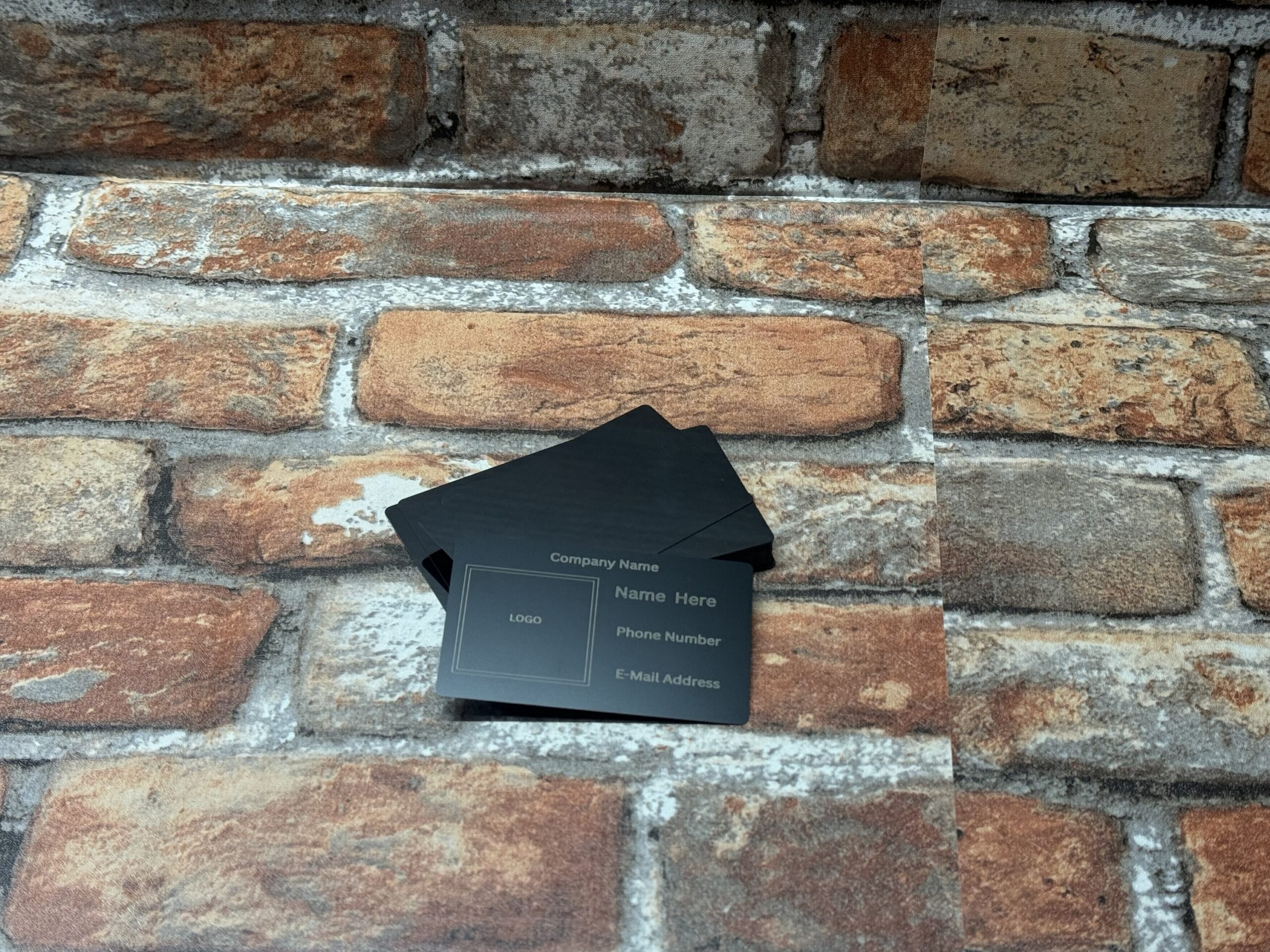 Custom Laser-Engraved Metal Business Card – Black with White/Grey Design (pack of 50)